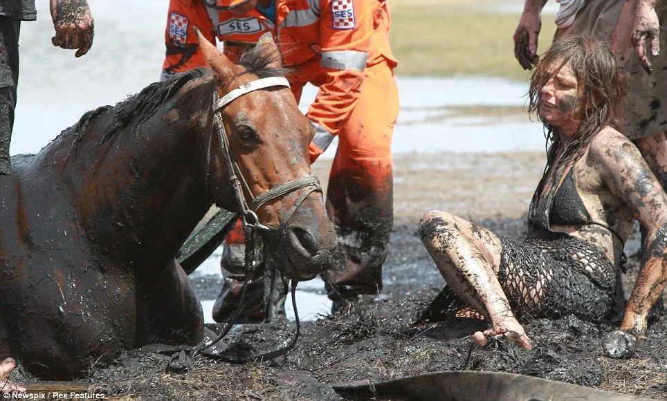 Ніколь Грехам та її донька Періс вирішили поїхати на відпочинок до узбережжя, що недалеко від Мельбурна, коли кінь міс Грехам застряг у болоті. Поміж того, кінь Періс теж частково застряг у трясовині, тож ситуація ще більш ускладнилася.