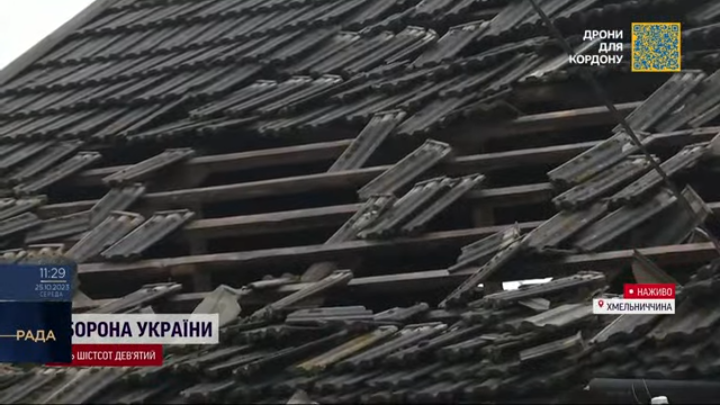 Пошкоджено сотні будинків. Міська влада оцінює збитки та намагається забезпечити людей плівкою, щоб накрити дахи. У середу у Славуті, як і по всій Україні, дощить, і вода просто заливає хати.