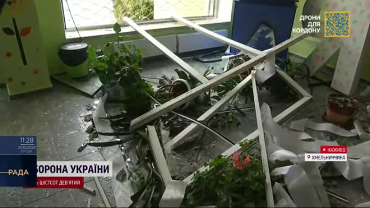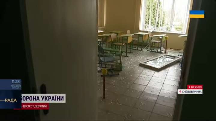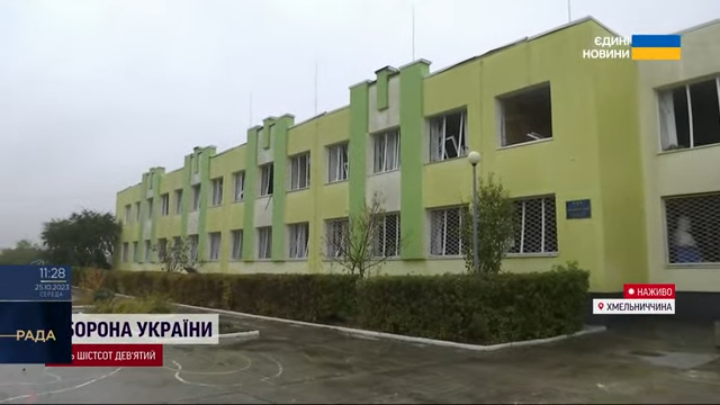 Школярі мали йти на уроки, але усі славутські заклади освіти понищили росіяни. "Замість проведення уроків вчителі збирають скло та шкільне приладдя", – каже журналістка.