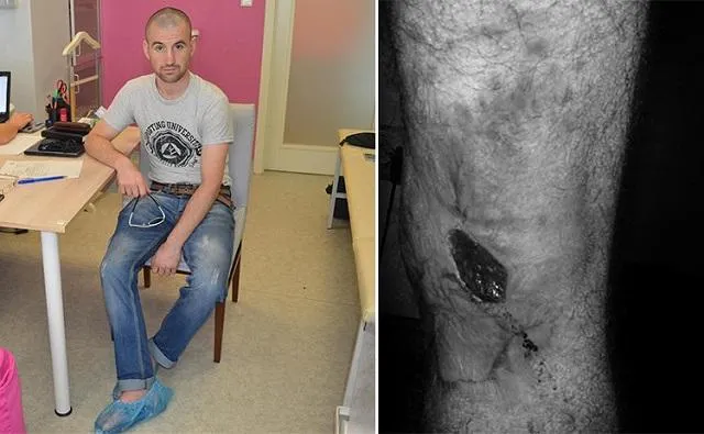 Артемівськ, Харків, Львів – Дмитро добряче попоневірявся військовими шпиталями, де із тіла витягнули кількадесят уламків. Попри усю майстерність лікарів, одна із ран не загоюється і по сьогодні: під час ходьби шкіра під коліном постійно розривається, і ніяк не може остаточно зростися. Звісно ж, із діркою під коліном багато не походиш, та і болить постійно. Саме тому пластика шкіри із застосуванням клітинних технологій стала останньою надією для бійця.