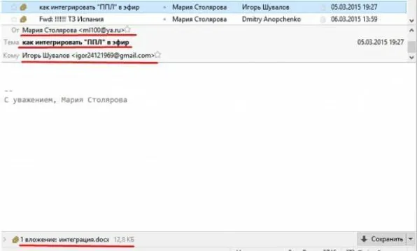 5 березня 2015 року Столярова надіслала Шувалову пропозицію щодо того, "як інтегрувати Капліна в ефір "Інтера".