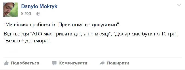"Ми ніяких проблем із "Приватом" не допустимо". Від творця "АТО має тривати дні, а не місяці", "Долар має бути по 10 грн", "Безвіз буде вчора",