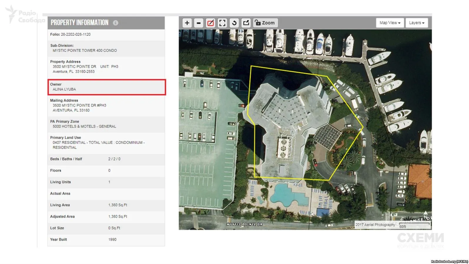 Місто Авентура, в якому у 2010-2011 роках родина Шемчуків придбала нерухомості на півмільйона, розташоване в 30 кілометрах від Маямі, у прибережній смузі. Аліна Люба залишається власницею пентхаусу в Mystic Pointe і донині.