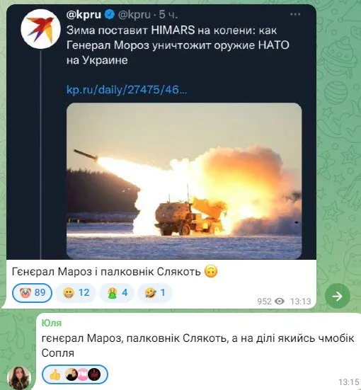 Мороз не жалітиме електродвигуни "ланцетів" та інших споживачів літій-іонних акумуляторів. Генератор для росіян буде дивиною, а буржуйка – провісницею смерті, адже дим демаскуватиме окупантів. У росіян не буде надійного тилу. Давно зникла "зеленка" і посадки вже не є бодай якоюсь надією вижити, сніг не сховає сліди й стане "зрадником", а "генерал Мороз" вкотре здійснить friendly fire.