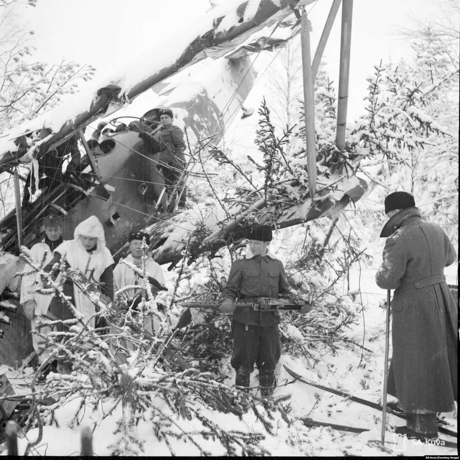 Фінський патруль розбирає збитий радянський літак / архівне фото / SA-Kuva