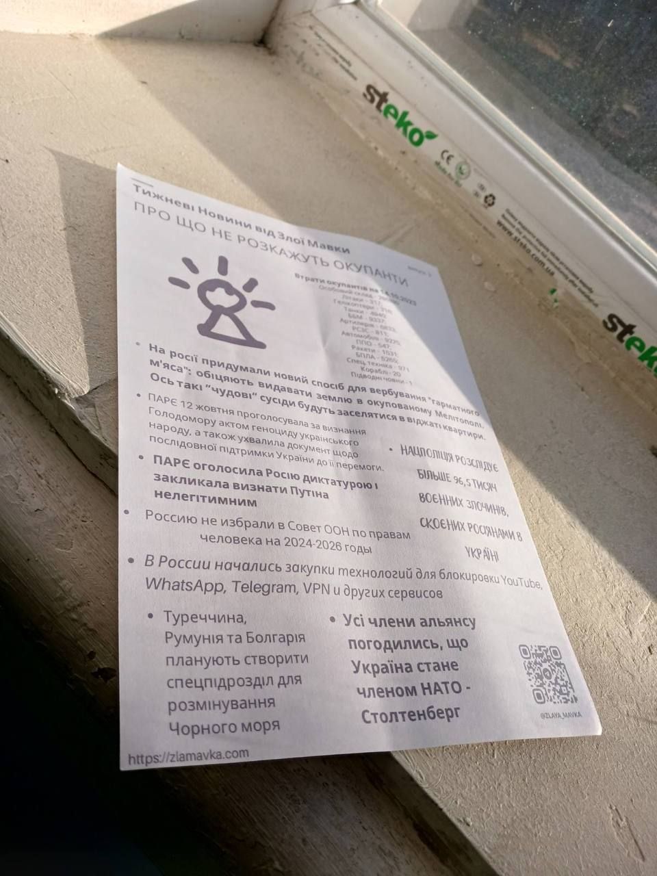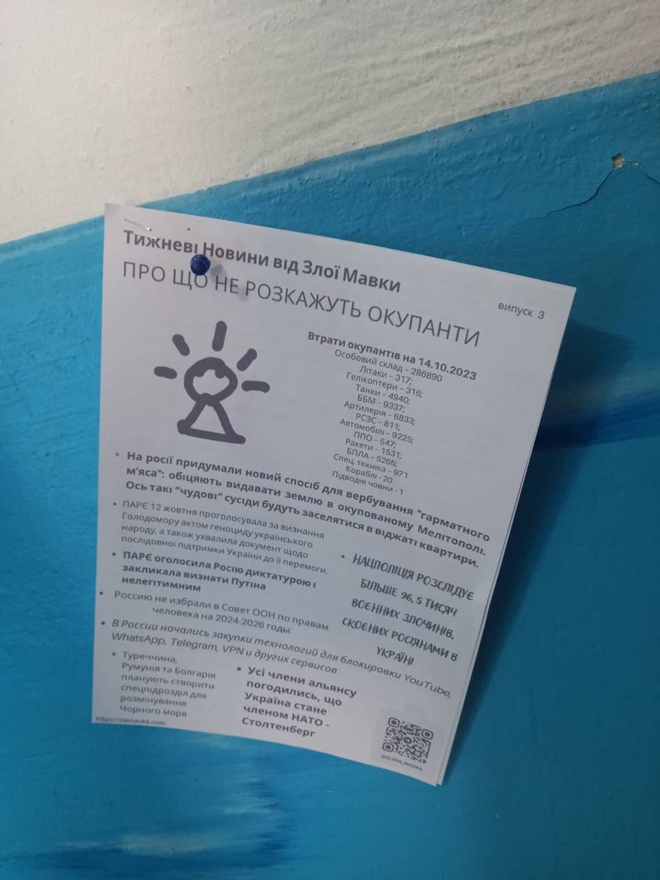 Тижневі новини від "Злої мавки" – це те, про що не розкажуть окупанти. Партизанки закликають, після того, як прочитав газету, передай її іншим.