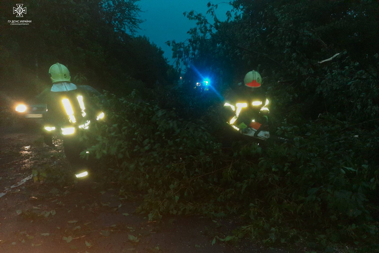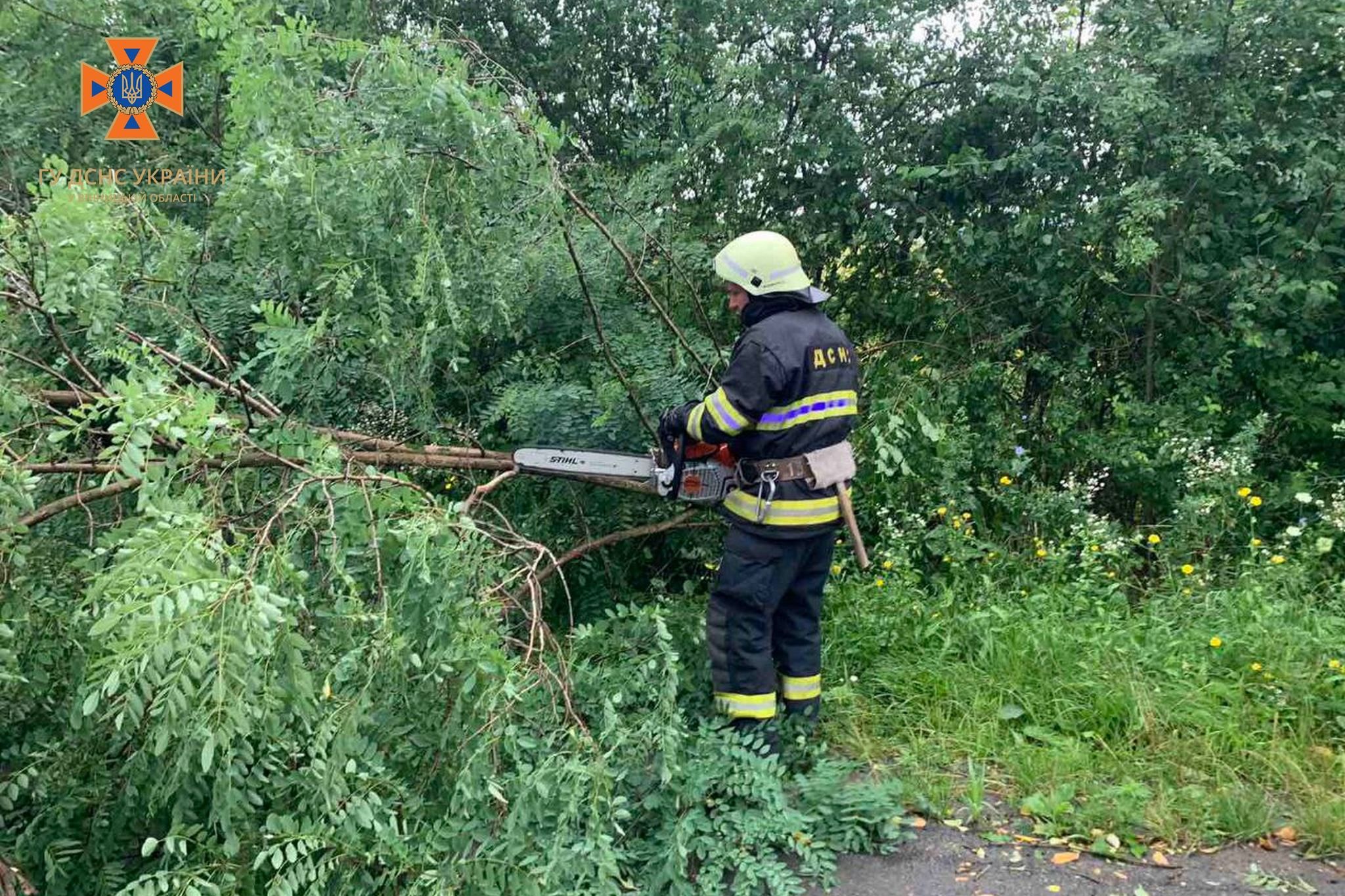 Внаслідок зливи у Вінницькій області 25 липня, як інформують рятувальники, сталося масове падіння дерев на проїжджі частини. Зо добу ДСНС-ники 12 разів виїжджали на розпилювання стовбурів.