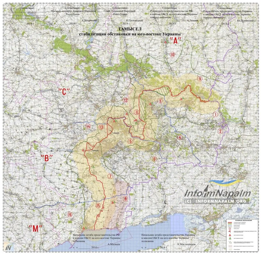 Як пише видання InformNapalm, карта була отримана на умовах повної анонімності від джерела з найближчого оточення так званого глави “ЛНР” Ігоря Плотницького і колишнього голови фракції Партії регіонів Олександра Єфремова. На карті стоять позначки про сторони, з якими був узгоджений цей документ. Серед них фігурує Плотницький, представники української сторони, а також моніторингової групи ОБСЄ.