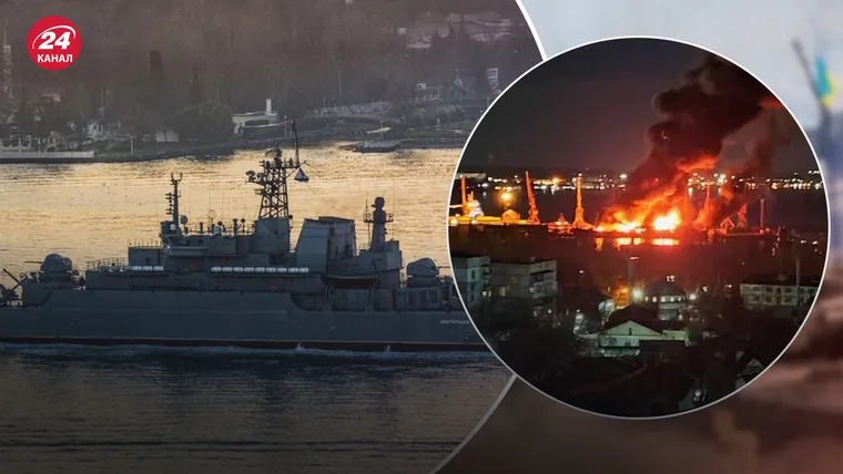 - Окупанти були змушені визнати факт атаки. Вибухи у Феодосії та знищення корабля вони назвали "відбиттям удару ЗСУ із застосуванням авіаційних керованих ракет". Також внаслідок цього нібито загинула одна людина, пошкоджені 6 будівель. Пропагандисти миттю придумали відповідь та заявили про нібито збиття Су-24 під Миколаєвом.