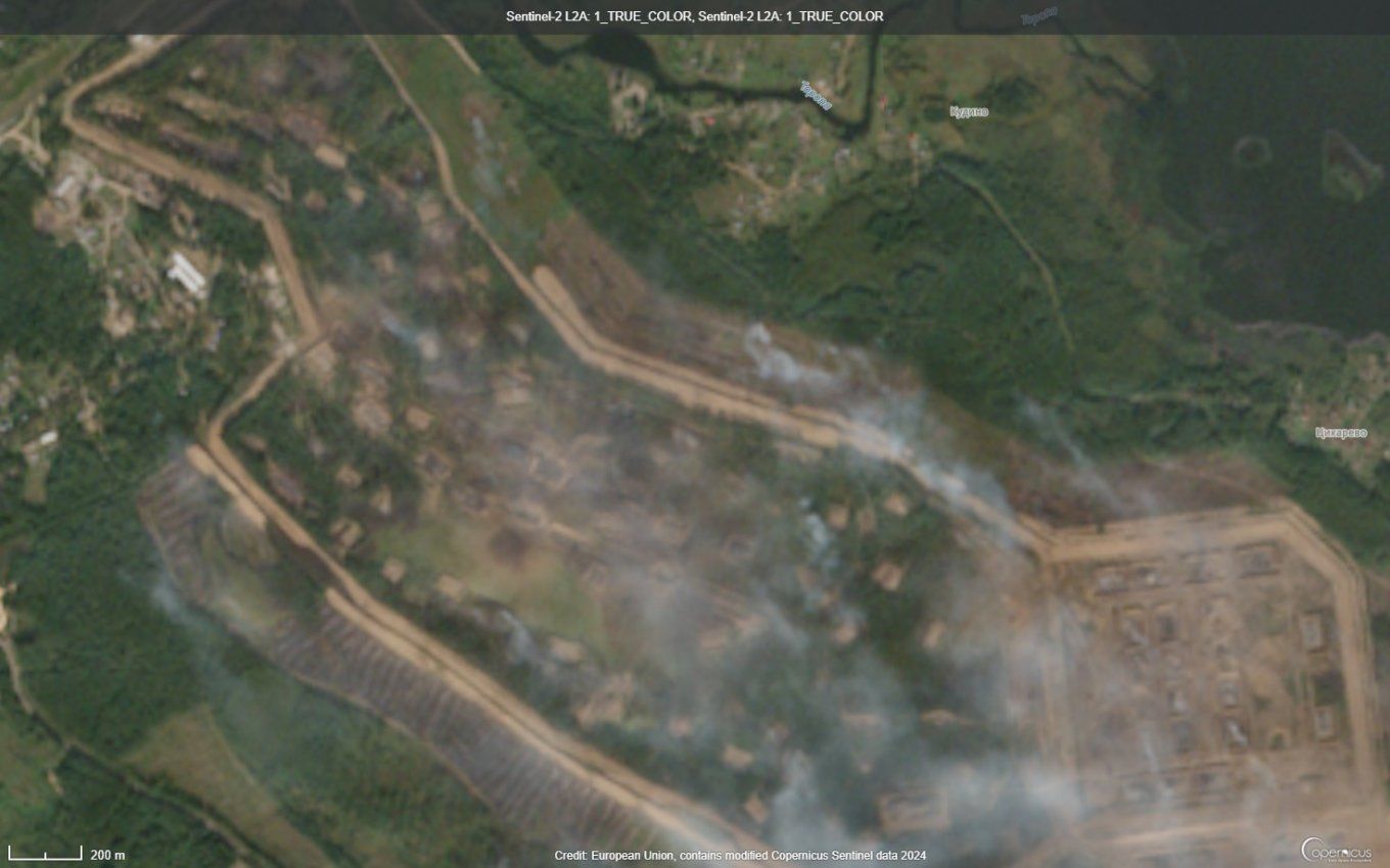 На знімках із супутника Planet Labs, які показали журналісти, видні наслідки пожежі, що тривала ще 19 вересня станом на 15:30 за київським часом.