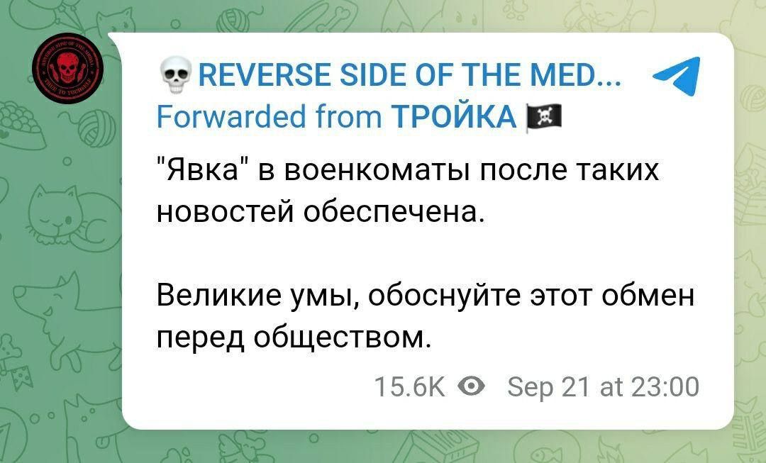 У росіян день від самого ранку не дуже. То їм оголошують мобілізацію, то українські герої повертаються додому. Після чималої кількості пропагандистських сюжетів і дописів, заяв та всього іншого бруду на наших захисників та захисниць, яке вклали в голову росіянам, вони тепер не можуть зрозуміти, як це сталося.