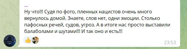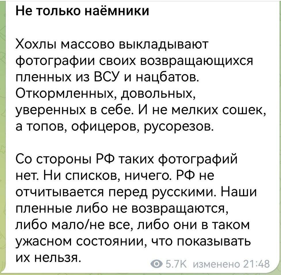 Тим часом у росіян продовжує палати від того, чому захисників "Азовсталі" відпустили. Мовляв, їм же обіцяли трибунал. І настрої серед місцевого населення повинні вкотре нагадати вам, що хороших росіян не існує.
