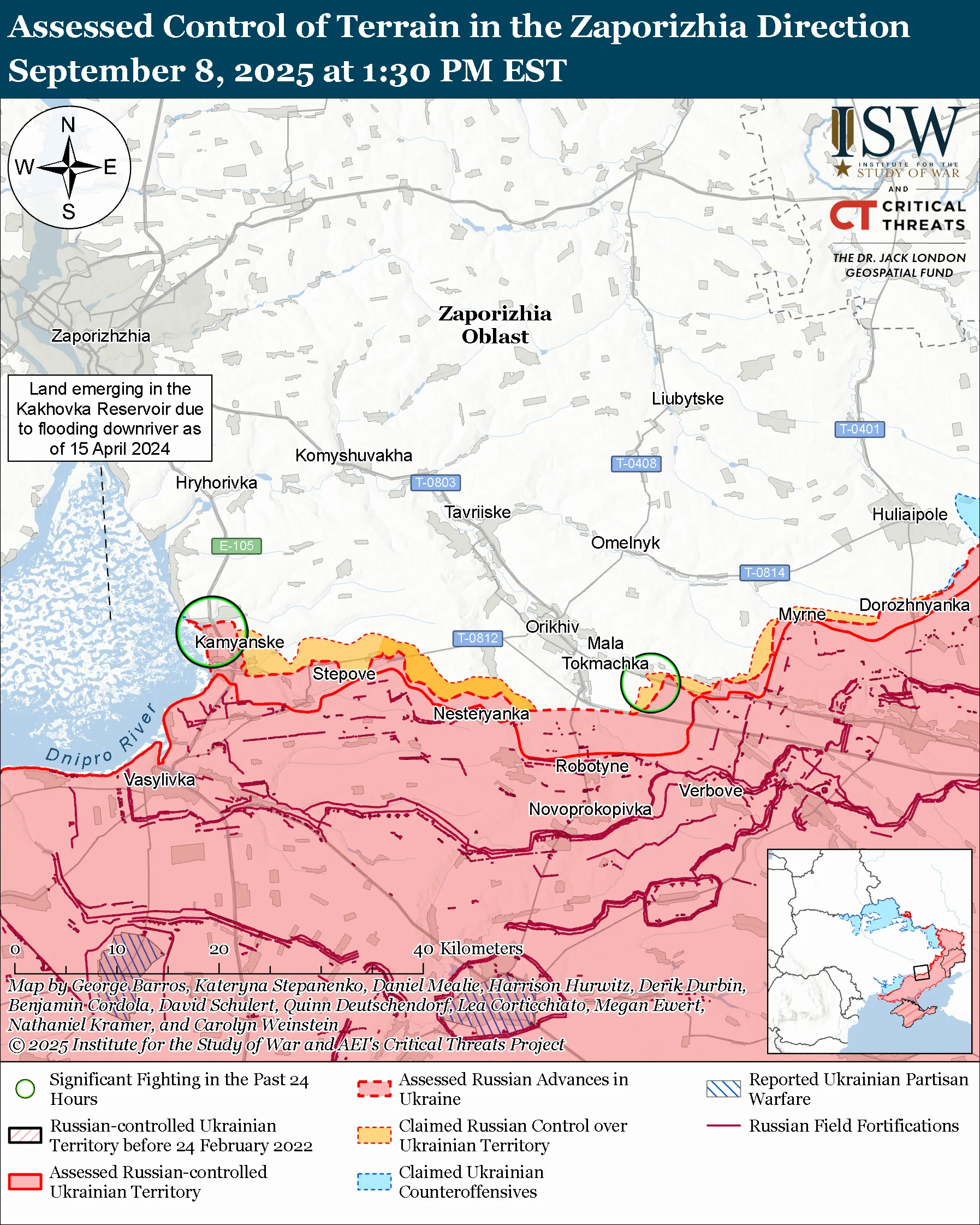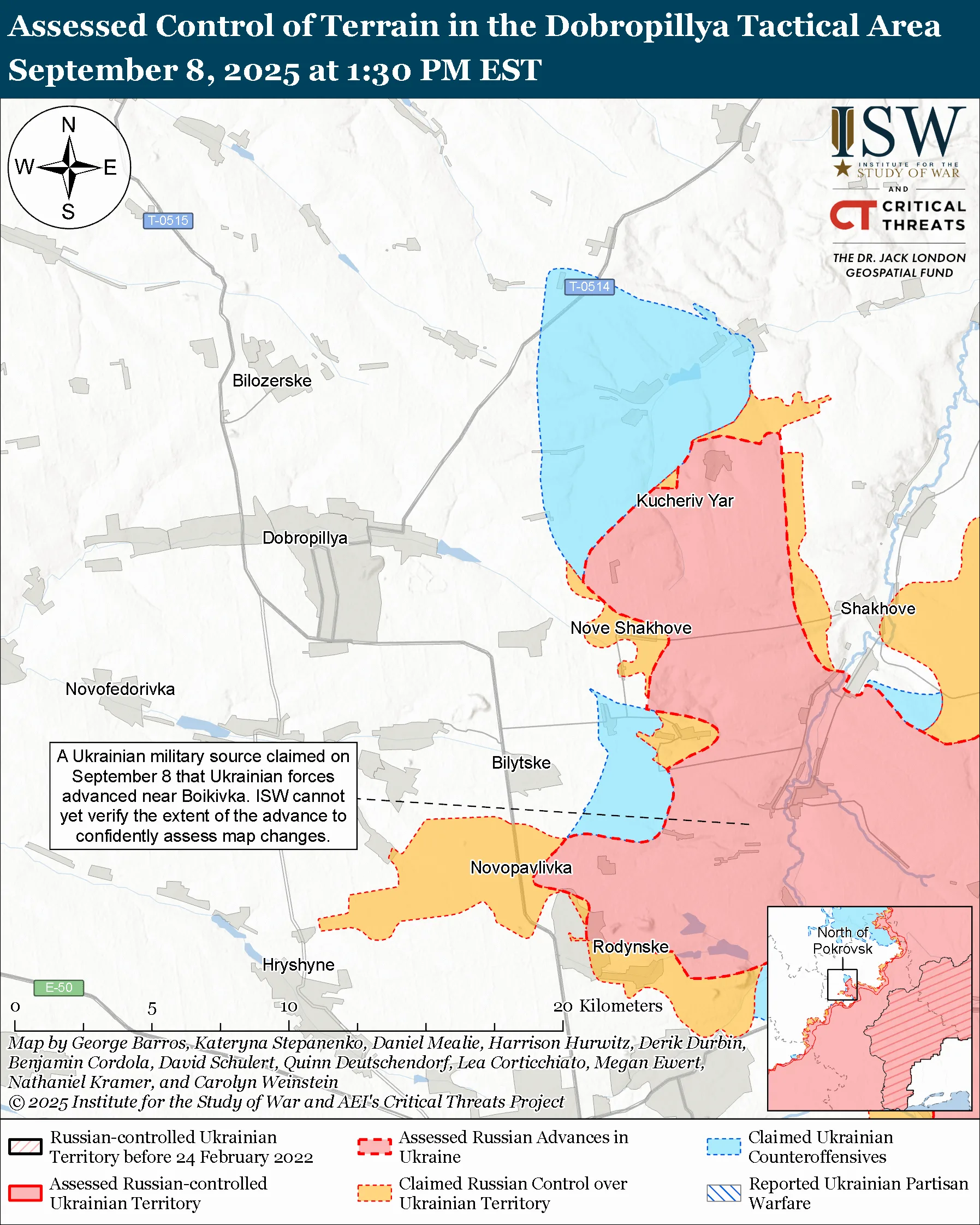 - Російські війська продовжили наступальні операції в тактичному районі Добропілля 8 вересня, але не досягли підтвердженого просування.