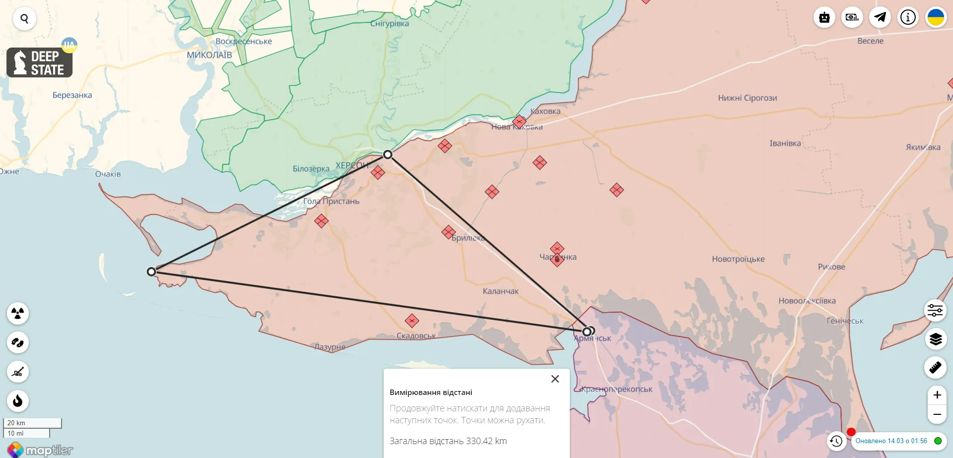 Військовий експерт продовжив, що на Півдні Дніпро мілішає, а отже його можна форсувати. Це розуміють не лише ЗСУ, а й росіяни, тому й починають потрохи тікати в бік Криму. Зокрема, від Нової Каховки до Армянська всього 70 кілометрів, і рух у цьому напрямку фактично відріже угруповання росіян західніше, й вони там і залишаться.