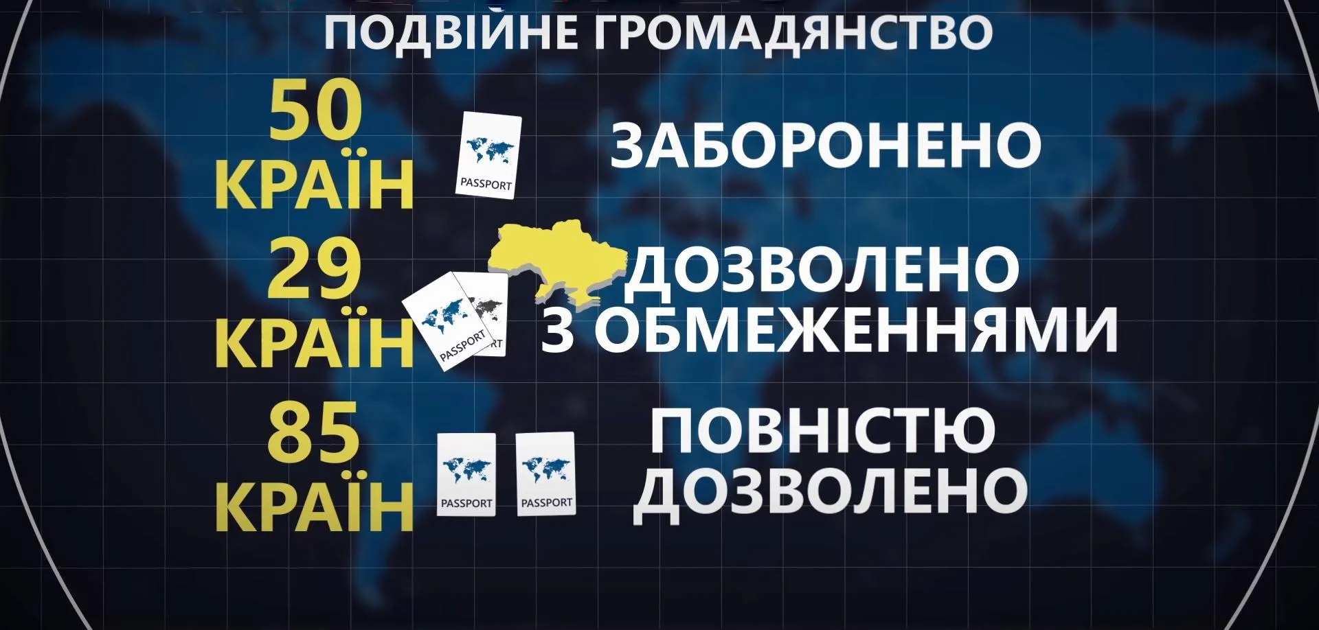 У світі лише 50 країн визнають тільки одне громадянство. Натомість у 29 країнах можна мати кілька громадянств, але з певними обмеженнями, наприклад як в Україні, а у 85 – наявність кількох паспортів є нормальним та законним явищем.