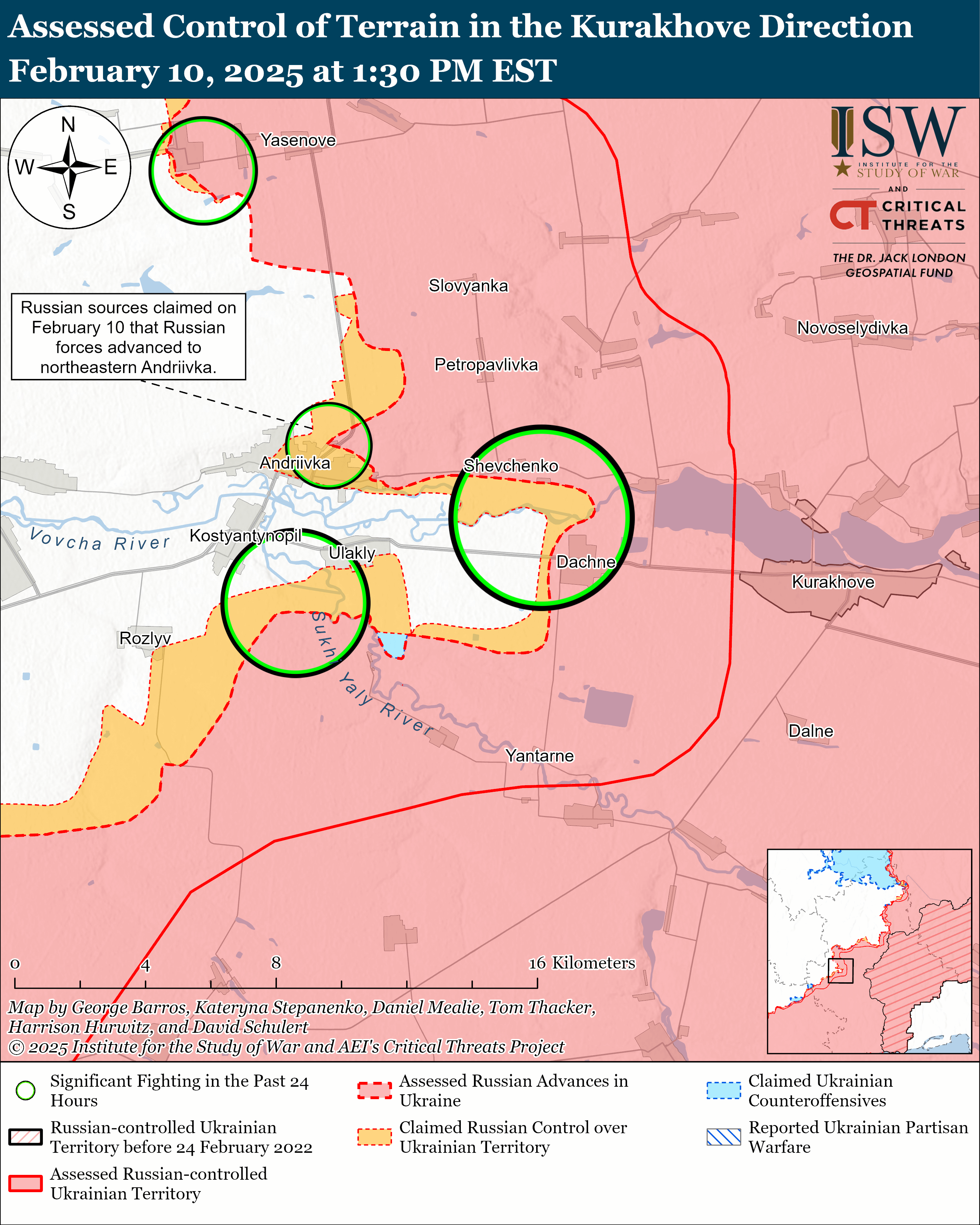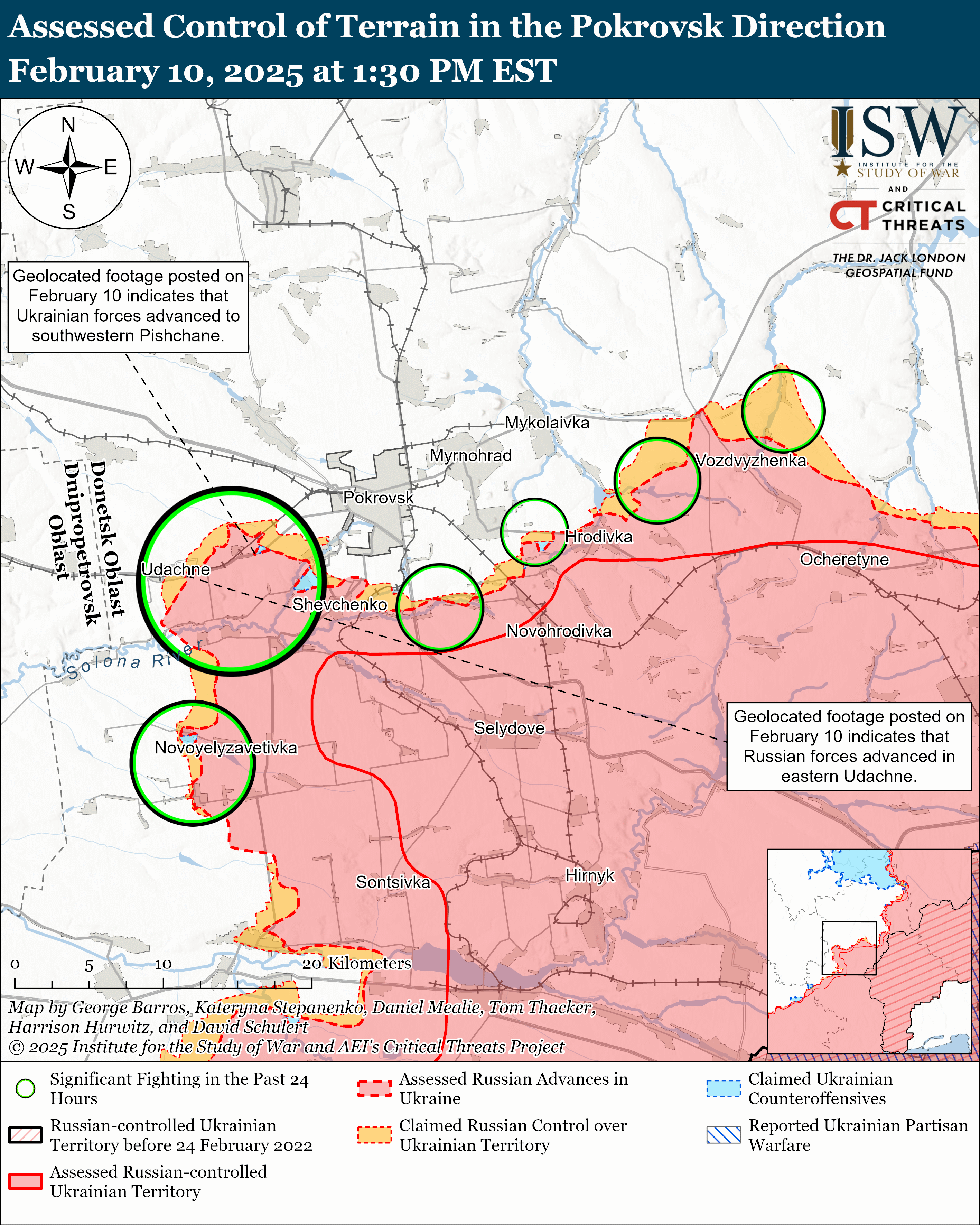 - Крім вищезгаданого, українські та російські сили нещодавно просунулися на Покровському напрямку на тлі продовження наступальних операцій Росії в цьому районі. Наші бійці очистили промзону у Водяне Друге та витіснили російські сили з частини Даченського.