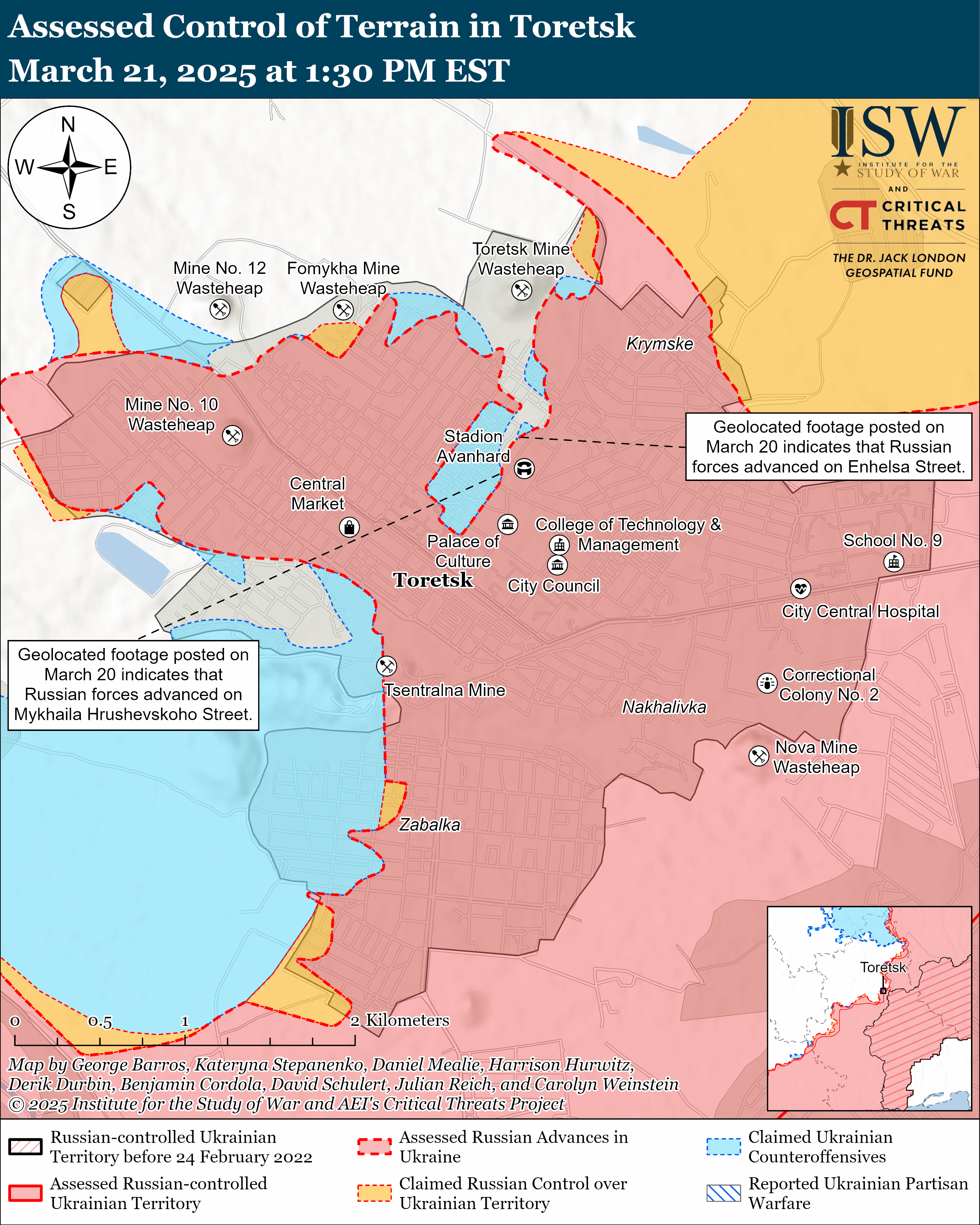 Бойові дії в Україні та Росії за 21 березня / Карти ISW
