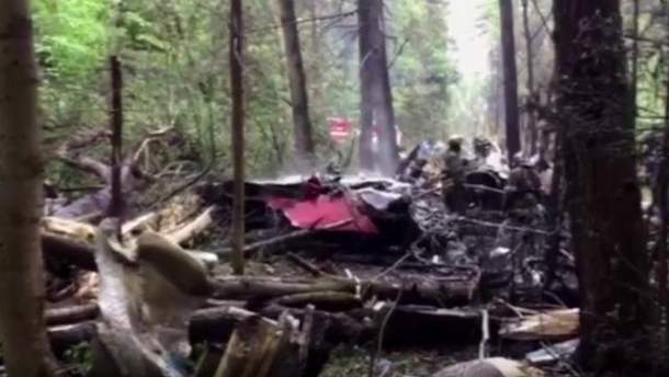 На кадрах видно обгорілі уламки літака, які розкидані на досить великій площі.